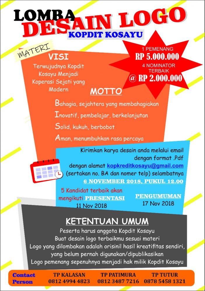 BAGI SELURUH ANGGOTA KOPDIT KOSAYU.. AYOO !! IKUTI LOMBA MEMBUAT DESAIN LOGO KOPERASI KREDIT KOSAYU GELOMBANG II DAN MENANGKAN HADIAH MENARIK DARI KAMI